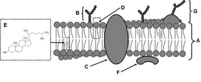 c) ¿Cuál de los componentes de membrana tiene función de reconocimiento celular? (0,4 puntos)