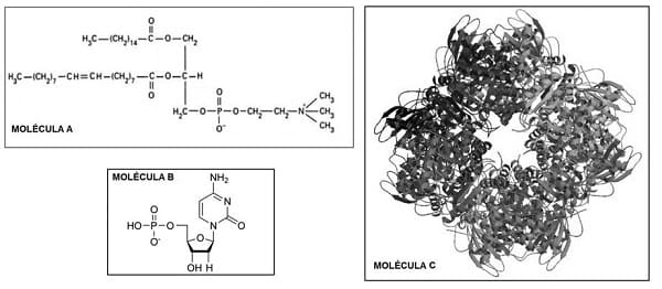 A partir de estas tres biomoléculas y de la información del esquema de la pregunta anterior, complete la siguiente tabla y responda a la cuestión de abajo. [1 punto]