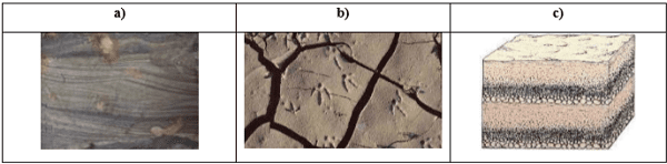 1). Describe las estructuras sedimentarias que se muestran en las imágenes a, b y c. ¿Cuál es su principal utilidad en geología? (1 punto)