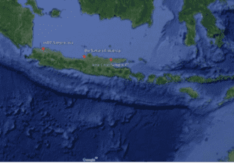 5) En la imagen adjunta aparecen las islas de Sumatra y Java, en el Océano Índico, situadas al borde de una profunda fosa oceánica y en las que son muy frecuentes los movimientos sísmicos y el volcanismo. Con esta información responde a las siguientes cuestiones (1 punto):