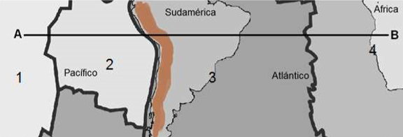 2.1. Indique qué tipo de límites se establecen entre las placas tectónicas intersectadas por la línea A - B.