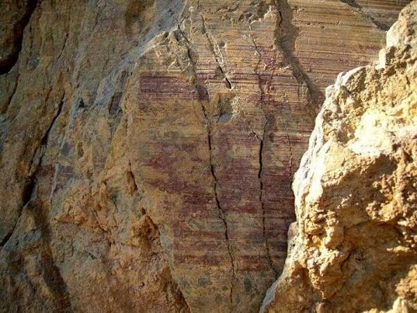 b) En la imagen se observa un espejo de falla, ¿podría corresponder este espejo con la falla que has dibujado? Para ello diga cómo ha sido el movimiento de los bloques en la falla de la imagen, en la vertical o en la horizontal. (0, 4 p.) Razone la respuesta indicando en qué se ha fijado (0, 4 p.).